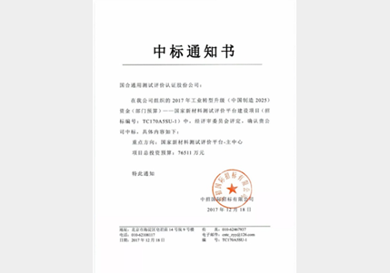 2017年12月,國(guó)家新材料測(cè)試評(píng)價(jià)平臺(tái)-主中心獲批建設(shè)