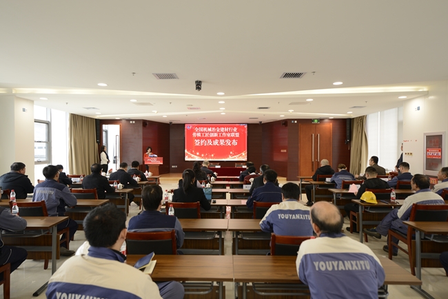 11月7日,全國機(jī)械冶金建材行業(yè)勞模創(chuàng)新工作室聯(lián)盟暨中國有研“工匠+”聯(lián)盟簽約及成果發(fā)布會在中國有研燕郊基地召開。本次活動以“產(chǎn)研融合創(chuàng)新,助力戰(zhàn)新產(chǎn)業(yè)”為主題,由機(jī)械冶金建材工會指導(dǎo),中國有研承辦。機(jī)械冶金建材工會二級巡視員李曉強(qiáng)蒞臨指導(dǎo),鞍山鋼鐵鞍鋼股份黨委副書記、工會主席趙忠民,中國建材泰山玻纖全國勞模溫廣勇等行業(yè)聯(lián)盟單位代表通過線上線下方式參會。中國有研黨委委員、紀(jì)委書記唐學(xué)智出席活動并講話,工會常務(wù)副主席葉松芳主持活動。