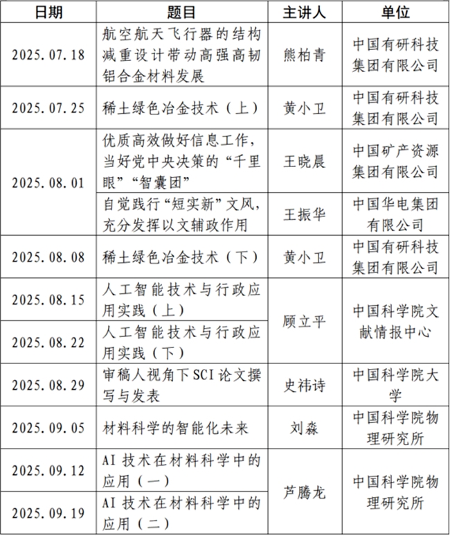 7月以來(lái),“每周學(xué)堂”累計(jì)舉辦10期,參訓(xùn)人數(shù)逾500人次,培訓(xùn)內(nèi)容聚焦專業(yè)前沿與實(shí)踐技能,涵蓋高強(qiáng)高韌鋁合金材料發(fā)展歷程、稀土綠色冶金技術(shù)、人工智能賦能材料科學(xué)關(guān)鍵技術(shù)、科技論文與公文寫作等主題,深度融合案例分析與經(jīng)驗(yàn)分享,蓄能助推員工業(yè)務(wù)技能提升,形成全員參與、持續(xù)學(xué)習(xí)的良好生態(tài)。