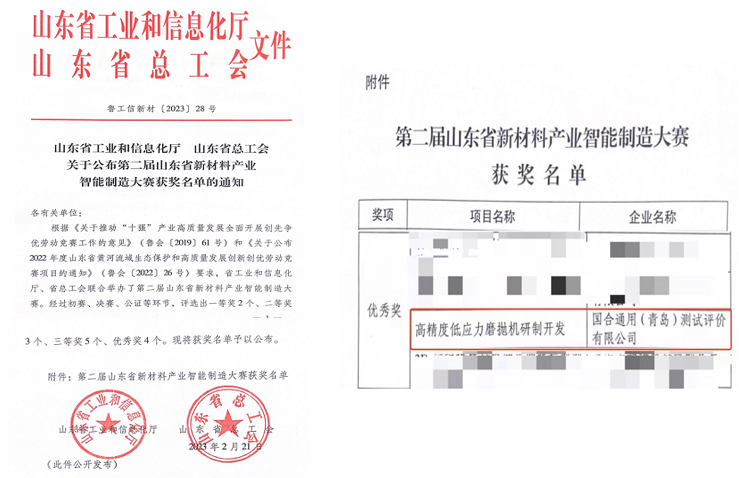 2023年2月21日,山東省工信廳和山東省總工會聯(lián)合發(fā)文公布了第二屆山東省新材料產(chǎn)業(yè)智能制造大賽獲獎名單,國合青島《高精度低應(yīng)力磨拋機(jī)研制開發(fā)》項(xiàng)目榮獲優(yōu)秀獎。