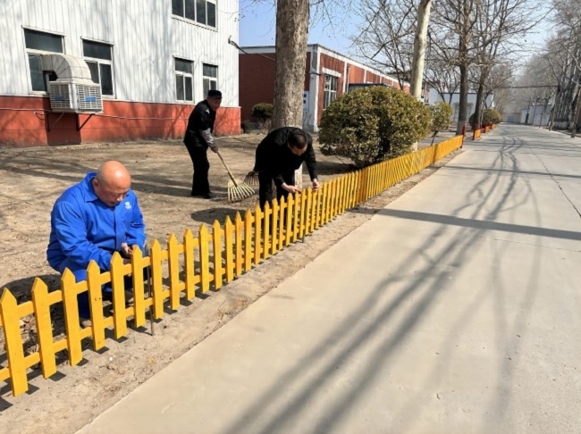 二部園區(qū)職工利用業(yè)余時(shí)間收集廢舊包裝箱、鐵管、木板等廢舊物資,自己動(dòng)手制作路邊道路護(hù)欄,變廢為寶美化園區(qū)環(huán)境。花期將至,綠化組職工在花房精心培育各種花卉,很多花種是職工們從自家?guī)?lái)的種子,職工們以園區(qū)為家,為二部園區(qū)增添一抹靚麗的春色。