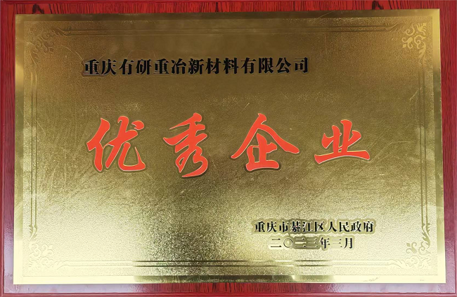 會上,有研重冶獲重慶市綦江區(qū)人民政府2022年度工業(yè)領(lǐng)域“優(yōu)秀企業(yè)”榮譽(yù)稱號,綦江區(qū)委副書記、區(qū)長羅成向公司執(zhí)行董事、總經(jīng)理李占榮頒授獎牌。