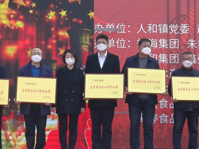 當(dāng)日,榮成稀土喜獲“志愿服務(wù)愛心合作伙伴”稱號(hào),副總經(jīng)理閆文龍代表公司上臺(tái)領(lǐng)獎(jiǎng)。