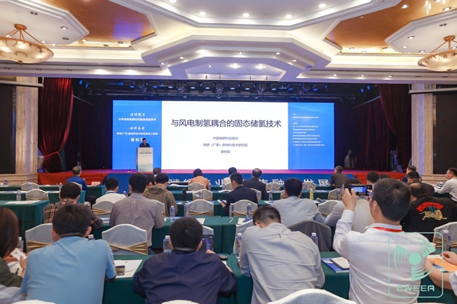 論壇吸引了來自風電、氫能設(shè)計院所、研究機構(gòu)、開發(fā)建設(shè)企業(yè)、風電整機及零部件制作企業(yè)、氫能產(chǎn)業(yè)鏈相關(guān)企業(yè)的200余位代表參與,與會專家分享交流了風電制氫的典型場景、應(yīng)用實踐以及發(fā)展思路、產(chǎn)業(yè)模式和技術(shù)路徑等相關(guān)內(nèi)容。中國可再生能源學會副理事長、中國有研科技集團有限公司首席專家、有研廣東院總工程師蔣利軍受邀為本次論壇開幕致辭并作《與風電制氫耦合的固態(tài)儲氫技術(shù)》主題報告。