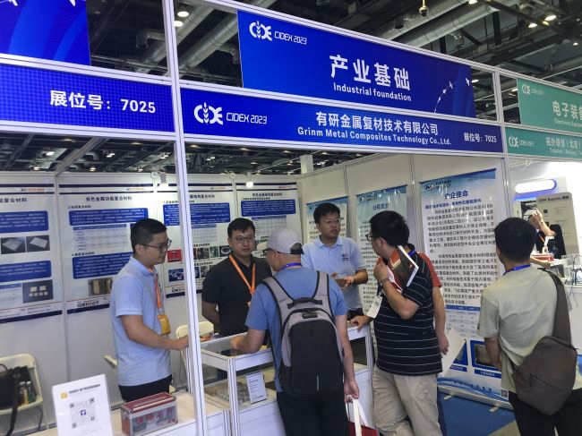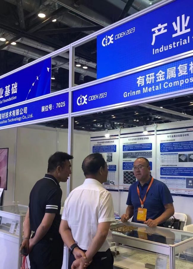 本屆大會(huì),有研復(fù)材采用原創(chuàng)技術(shù)為軍工電子行業(yè)提供散熱解決方案,在高導(dǎo)熱金屬基功能復(fù)合材料領(lǐng)域取得重要原創(chuàng)性突破,圍繞國(guó)防軍工電子及高端民用電子散熱需求開發(fā)了高導(dǎo)熱高強(qiáng)度石墨鋁復(fù)合材料,突破了此類材料的性能極限,材料制備技術(shù)屬于國(guó)內(nèi)首創(chuàng)。開發(fā)的石墨鋁均熱板、面板等產(chǎn)品在國(guó)產(chǎn)重點(diǎn)裝備上批量應(yīng)用,形成良好的技術(shù)引領(lǐng)和產(chǎn)業(yè)推動(dòng)作用。有研復(fù)材創(chuàng)新采用自主開發(fā)粉末冶金技術(shù),研制出綜合性能優(yōu)異的電子封裝用硅鋁復(fù)合材料,主要性能超越進(jìn)口材料,達(dá)到國(guó)際領(lǐng)先水平。牽頭制定了硅鋁國(guó)家軍用標(biāo)準(zhǔn),有力推動(dòng)了國(guó)產(chǎn)硅鋁材料批量應(yīng)用,成功實(shí)現(xiàn)進(jìn)口替代,為武器裝備關(guān)鍵材料的自主可控做出貢獻(xiàn)。同時(shí),依托國(guó)家有色金屬?gòu)?fù)合材料工程技術(shù)研究中心近30年的鋁合金粉末冶金技術(shù)沉淀,開發(fā)并通過各類臺(tái)架考核的某型飛機(jī)鋁基復(fù)合材料鍛件,產(chǎn)品疲勞壽命優(yōu)于國(guó)外同類產(chǎn)品,成功實(shí)現(xiàn)進(jìn)口替代。展會(huì)現(xiàn)場(chǎng),有研復(fù)材為參觀客戶提供了全面而專業(yè)的解答與服務(wù)。有研復(fù)材展臺(tái)的“高導(dǎo)熱石墨鋁復(fù)合材料”、“高導(dǎo)熱金剛石鋁復(fù)合材料”、“硅鋁復(fù)合材料”、“梯度復(fù)合材料”、“高強(qiáng)高韌鋁基復(fù)合材料”、“高精密高模量鋁基復(fù)合材料”等產(chǎn)品備受關(guān)注。
