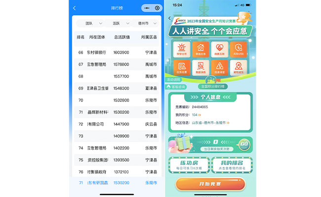 組織參加應(yīng)急普法知識(shí)競(jìng)賽和全國(guó)安全生產(chǎn)月網(wǎng)絡(luò)知識(shí)競(jìng)賽,通過(guò)參加競(jìng)賽,不斷積累安全知識(shí),熟悉相關(guān)法律法規(guī)、標(biāo)準(zhǔn)、規(guī)范內(nèi)容,從而梳理底線思維,提高全員安全意識(shí)。