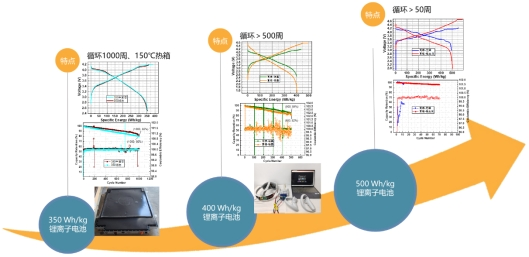 400 Wh/kg系列電池技術(shù)。少數(shù)報道的400 Wh/kg鋰電池技術(shù),一般采用超高鎳三元正極材料、超高容量硅負(fù)極材料,不僅成本高,而且使用壽命短,嚴(yán)重限制其實際應(yīng)用。國家動力電池創(chuàng)新中心采用自主開發(fā)的低成本富鋰錳基材料、超高鎳三元材料兩大技術(shù)路線,匹配低膨脹高穩(wěn)定硅基負(fù)極,結(jié)合多元復(fù)合粘結(jié)劑及多維導(dǎo)電網(wǎng)絡(luò)構(gòu)筑技術(shù)、自主設(shè)計的高電壓功能電解液及自適應(yīng)成膜技術(shù),攻克了比容量超1000 mAh/g硅基負(fù)極的表界面穩(wěn)定性難題,實現(xiàn)電池能量密度超過402 Wh/kg、體積比能量達(dá)900 Wh/L、循環(huán)500周容量保持率大于85%,支持2C快速充放電,滿足體積小、質(zhì)量輕、續(xù)航長的應(yīng)用需求,在虛擬現(xiàn)實(VR)等新型電子產(chǎn)品上實現(xiàn)了驗證,拓寬了高能量密度電池的應(yīng)用領(lǐng)域。