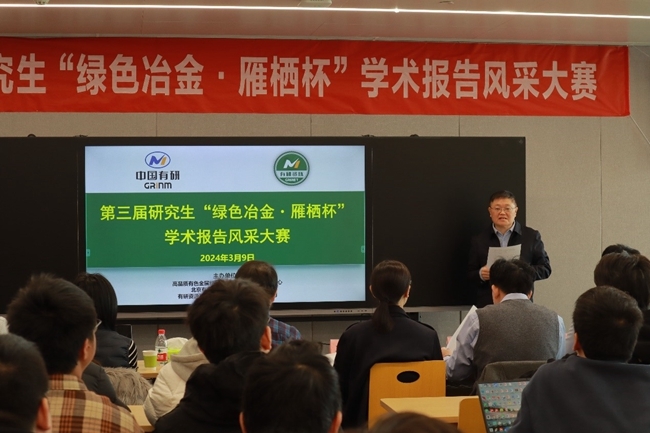·····為進一步提高研究生的科學素養(yǎng),營造活躍的科技創(chuàng)新與學術(shù)交流氛圍,3月9日,在北京有色金屬研究總院研究生院和有研資源環(huán)境技術(shù)研究院(北京)有限公司指導下,高品質(zhì)有色金屬綠色特種冶金國家工程研究中心舉辦第三屆研究生“綠色冶金·雁棲杯”學術(shù)報告風采大賽。研究生院副院長馮雪;有研資環(huán)院總經(jīng)理姚國成,副總經(jīng)理王星明、劉玉柱、向宇出席會議。有研資環(huán)院各事業(yè)部負責人、科研骨干、研究生等50余人參與活動。大賽由綠色冶金國家工程研究中心主任溫建康主持。