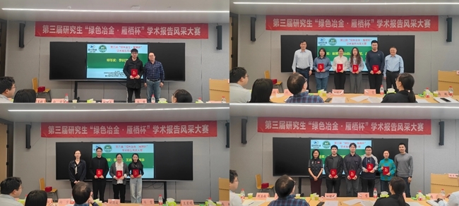 大賽圍繞生物及濕法冶金、綠色高效選礦、元素分離及高純金屬制備、固廢及危廢資源化等領(lǐng)域,分享行業(yè)研究進展、關(guān)鍵技術(shù)突破等內(nèi)容,并進行了深入交流與探討。經(jīng)過前期的充分準備,26名研究生匯報課題進展,帶來了一場高質(zhì)量的學術(shù)競賽。其中,綠色選冶事業(yè)部2022級碩士研究生李回漢憑借《“妖鎳”與“非常規(guī)生物浸出”》的精彩演講奪得大賽特等獎。