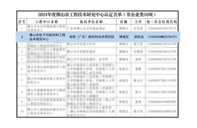 7月9日,佛山市科學(xué)技術(shù)局發(fā)布2024年度佛山市工程技術(shù)研究中心認定名單,由有研廣東院申報的“佛山市電子功能材料工程技術(shù)研究中心”成功獲得認定。