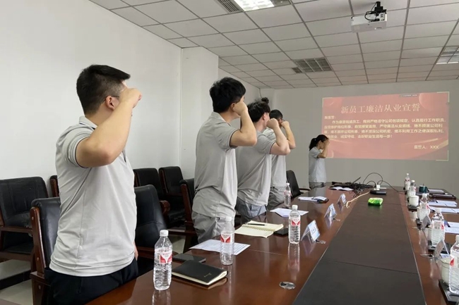 培訓(xùn)內(nèi)容涉及市場(chǎng)發(fā)展、技術(shù)研發(fā)、生產(chǎn)制備、質(zhì)量管理等多個(gè)板塊,由公司部分部門領(lǐng)導(dǎo)及核心骨干人員擔(dān)當(dāng)授課講師,全面增強(qiáng)了新員工對(duì)業(yè)務(wù)知識(shí)的了解。綜合辦公室經(jīng)理張品為新入職員工講授了保密知識(shí),開展廉潔文化教育,并組織新員工進(jìn)行了廉潔從業(yè)宣誓。
