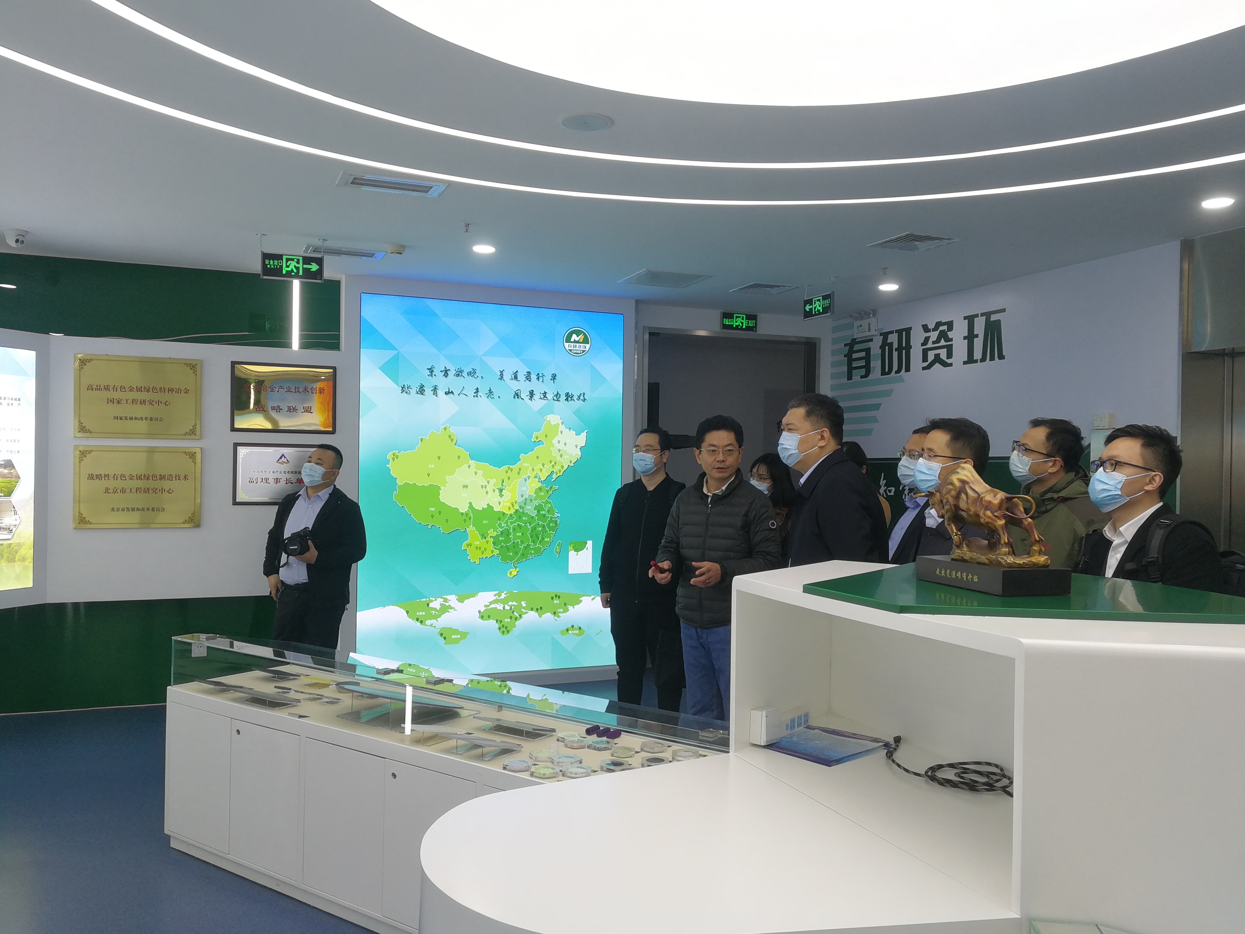 郭捷一行實地參觀了有研資環(huán)院展廳和實驗室,劉營系統(tǒng)介紹了有研資環(huán)院的發(fā)展歷程、主營業(yè)務(wù)等情況。