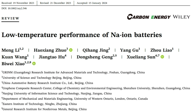 同時,團隊發(fā)表于《Carbon Energy》上題為“Low-temperature performance of Na-ion batteries”(影響因子19.5)的綜述性文章分析總結(jié)了鈉離子電池在低溫工作時所面臨的鈉離子傳輸動力學與性能衰減的相關性,并從理論機制角度闡述了不同環(huán)境下的離子擴散行為,分析了提升鈉離子低溫性能的實際方案,為發(fā)展特種鈉離子電池提供了有力證據(jù)。