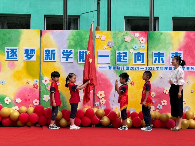 9月2日上午,有研幼兒園全體師幼聚集在操場,帶著希望,帶著憧憬,舉行了新學(xué)期的開學(xué)典禮。大班升旗手高舉著五星紅旗入場,在莊嚴的國歌聲中,五星紅旗冉冉升起。