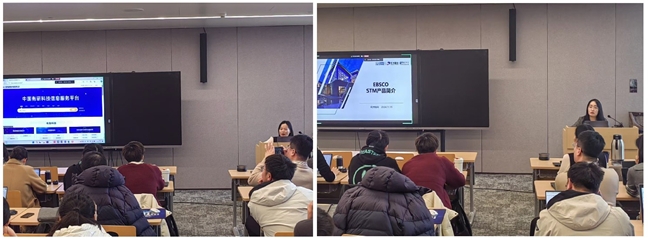 培訓會邀請了中國知網科技企業(yè)產品項目部馬淑偉和國際資源合作部寧靜兩位老師授課。老師介紹了“中國有研科技信息服務平臺”的使用方法,針對基于語義的智能檢索、AI智能助手、個人中心功能以及EBSCO-STMS數(shù)據(jù)庫檢索、閱讀及輔助工具應用等進行了詳細地講解和演示,并對參訓人員進行了答疑和交流。