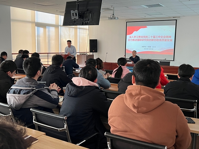 12月16日,國聯(lián)研究院組織開展青年思政教育暨形勢輔導報告,公司黨委書記、總經理徐冉以《深入學習貫徹黨的二十屆三中全會精神 全力推進國聯(lián)研究院創(chuàng)新創(chuàng)收高質量發(fā)展》為題專題授課。國聯(lián)研究院團支部書記蘇子龍主持會議,公司團員青年、在讀研究生參加會議。