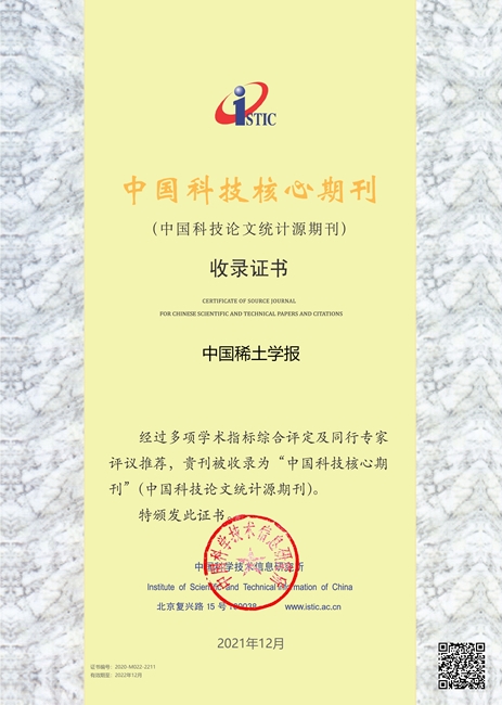 《稀有金屬》2020年度核心影響因子1.213,較上一年度(0.955)增長(zhǎng)27%,在23種金屬材料類期刊中排名第三,較上一年度(4/23)提升1位,核心總被引頻次1580,較上一年度(1382次)增長(zhǎng)14%;《分析試驗(yàn)室》2020年度核心影響因子1.018,較上一年度(0.911)增長(zhǎng)12%,在11種冶金工程技術(shù)類期刊中排名第四,再次入選2020年“百種中國(guó)杰出學(xué)術(shù)期刊”,已連續(xù)三年獲得此稱號(hào);《中國(guó)稀土學(xué)報(bào)》2020年度核心影響因子1.118,較上一年度(1.059)增長(zhǎng)6%,在29種材料科學(xué)類期刊中排名第三。