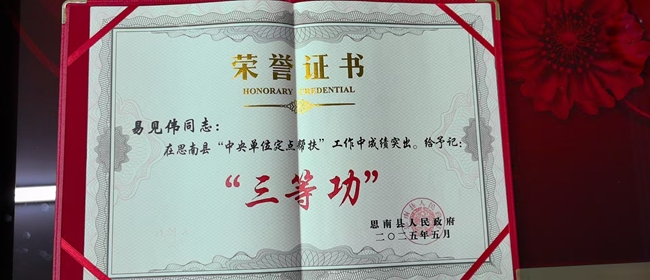 近日,集團(tuán)派駐貴州省思南縣掛職干部易見偉被思南縣人民政府記三等功,吳桂勇榮獲“全省鄉(xiāng)村振興優(yōu)秀駐村第一書記”。