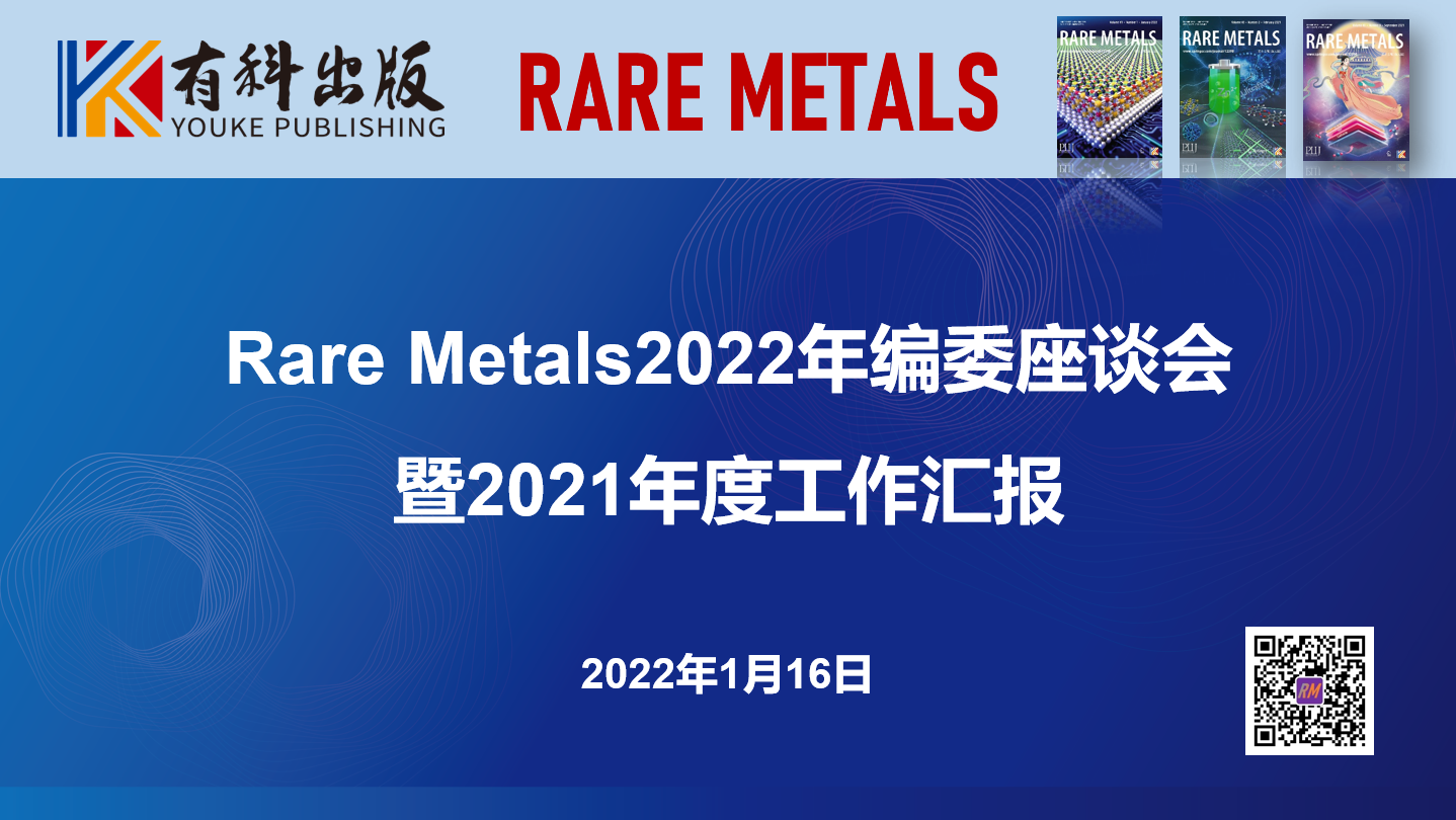 1月16日,有研集團(tuán)主辦期刊《稀有金屬(英文版)》2022年編委座談會(huì)暨2021年度工作匯報(bào)在線上線下同步召開(kāi)。副主編北京大學(xué)侯仰龍教授、清華大學(xué)林元華教授、北京航空航天大學(xué)蔣成保教授、青年編委及編輯部成員共100余人出席會(huì)議。會(huì)議由有科出版總經(jīng)理錢九紅主持。
