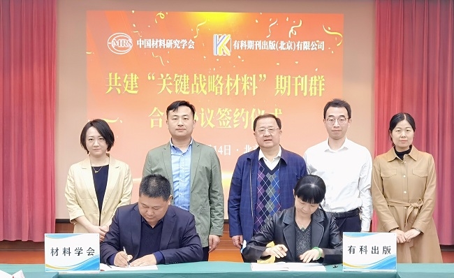 4月14日,有科期刊出版(北京)有限公司與中國材料研究學會共建“關鍵戰(zhàn)略材料”期刊群合作協(xié)議簽約儀式在北京召開。有研集團黨委委員、副總經(jīng)理周旗鋼主持簽約儀式。有科出版董事長、總經(jīng)理錢九紅,中國材料研究學會秘書長張增志分別代表雙方簽署合作協(xié)議。
