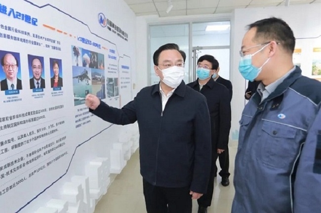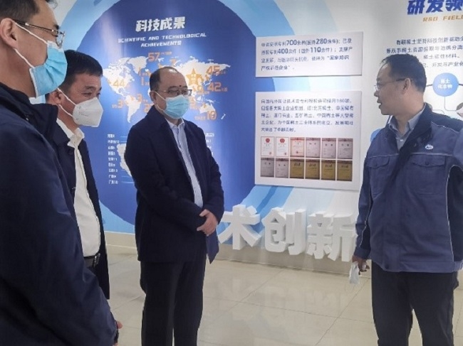 4月14日上午,威海市委副書記、市長閆劍波到有研稀土(榮成)公司調(diào)研疫情防控、企業(yè)經(jīng)營狀況,威海市副市長徐明等領(lǐng)導(dǎo)陪同。有研稀土(榮成)公司黨支部書記、總經(jīng)理馬躍華介紹相關(guān)工作情況。