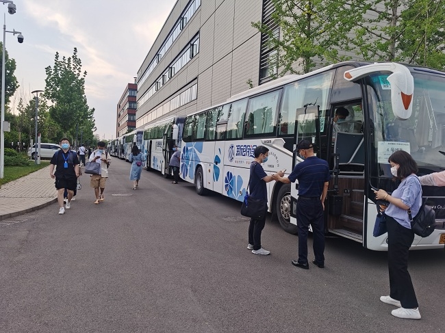 6月6日,懷柔園區(qū)正式恢復(fù)通勤,按照防疫要求,通勤班車需保持50%以下滿載率。有研興友積極與運(yùn)輸公司協(xié)調(diào)溝通,增派車輛,同時(shí)嚴(yán)格落實(shí)防疫措施,增配人員為乘車員工進(jìn)行掃碼、測溫,確保安全基礎(chǔ)上滿足員工通勤需求。