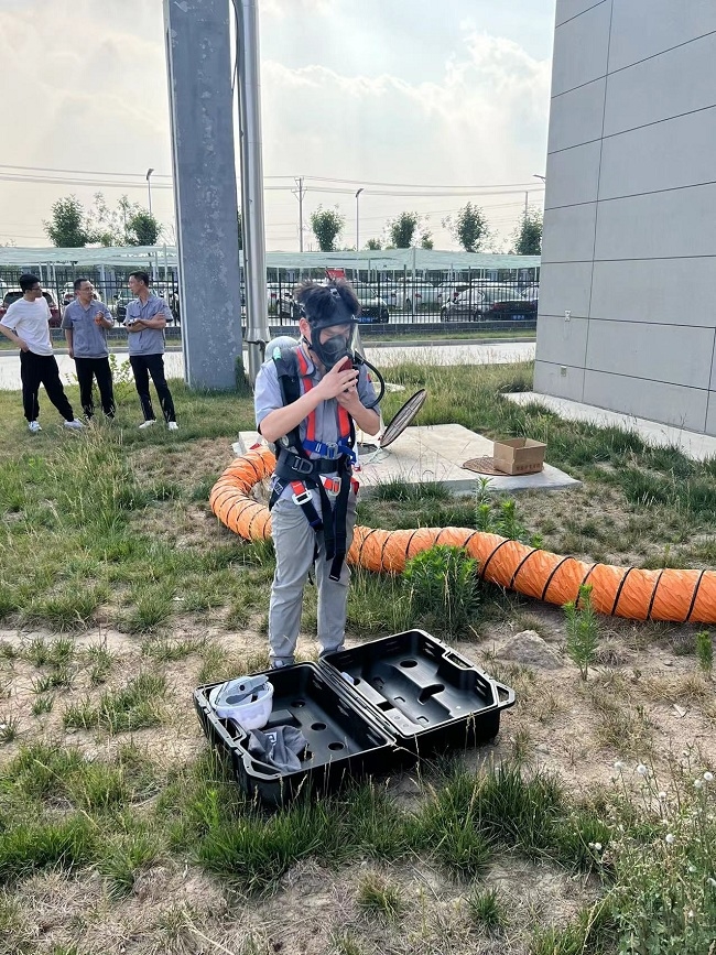 活動(dòng)開始前,專業(yè)人員進(jìn)行了正壓式呼吸器救援工具使用的現(xiàn)場(chǎng)教學(xué),使員工能夠熟練掌握使用方法。