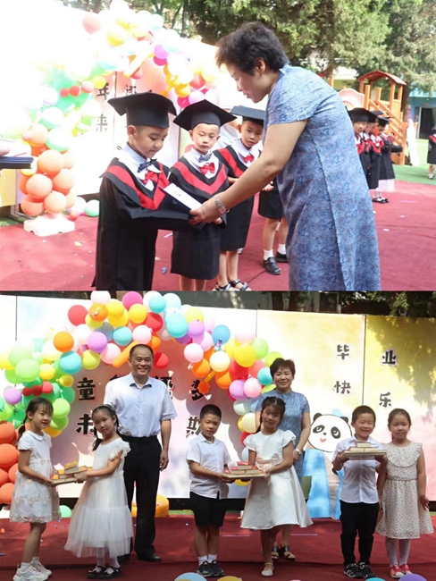有研興友領(lǐng)導(dǎo)和園長(zhǎng)為孩子們頒發(fā)人生中的第一份畢業(yè)證書(shū)和禮物,一張張證書(shū),承載了幼兒園的點(diǎn)點(diǎn)滴滴。