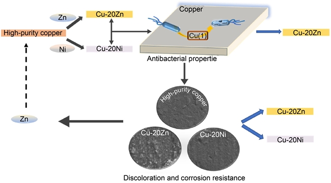 《稀有金屬(英文版)》2022年9月上線文章《Zn/Ni元素添加對銅合金抗菌、耐蝕和抗變色性能影響研究》(Antibacterial property, corrosion and discoloration resistance of pure copper containing Zn or Ni),由有研科技集團有限公司有色金屬材料制備加工國家重點實驗室的米緒軍教授課題組完成,對Zn/Ni元素添加對抑菌銅材料抗菌和耐蝕性能影響進行研究,為后續(xù)抑菌銅材料成分優(yōu)化提供數(shù)據(jù)支持和理論依據(jù)。