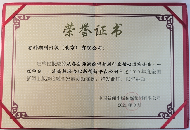 有科出版“從各自為戰(zhàn)編輯部到行業(yè)核心國有企業(yè)·一級學會·一流高校聯(lián)合出版創(chuàng)新平臺公司”入選中宣部中國新聞出版?zhèn)髅郊瘓F組織的2020年度全國新聞出版深度融合發(fā)展創(chuàng)新案例。