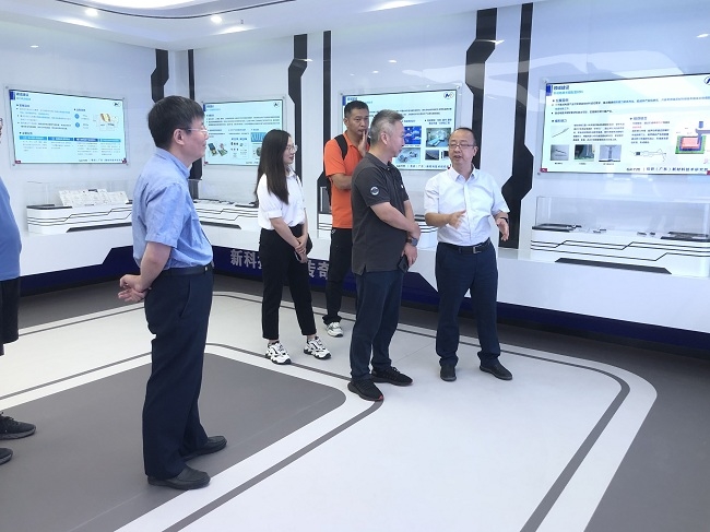 講座結束后,鮑威一行參觀了有研廣東院展室,毛昌輝詳細介紹了廣東院研究領域布局、人才隊伍建設等情況。雙方表示后續(xù)將推進在氫源雜質氣體的毒化機理研究、氫能相關標準等方面開展合作,共同促進技術開發(fā)和市場應用發(fā)展。