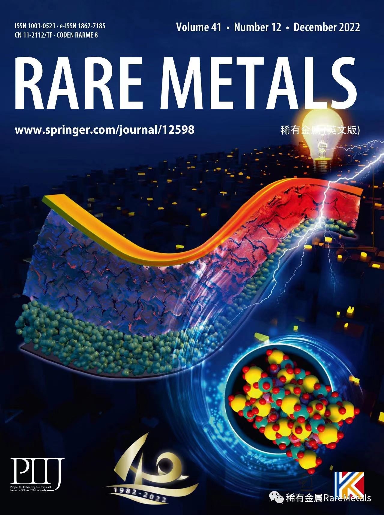 《稀有金屬(英文版)》,月刊,由中國有色金屬學會、中國有研科技集團有限公司主辦,有科期刊出版(北京)有限公司出版。目前被SCIE,EI,CSA,CAS,SCOPUS等國際著名檢索系統(tǒng)或數(shù)據(jù)庫列為收錄源期刊,最新JCR影響因子6.318,位于國際冶金工程類Q1區(qū),TOP6期刊。致力于出版和傳播稀有金屬領(lǐng)域高水平研究成果,建立科學家和工程師之間的溝通平臺。報道內(nèi)容涵蓋了稀有金屬和有色金屬選礦、冶煉、合金加工、材料研制和理化分析測試等方面的科研成果以及稀有金屬在新材料(包括超導體、半導體、化合物和陶瓷)中的應(yīng)用。中國科技期刊卓越行動計劃入選期刊,中國科技期刊國際影響力提升計劃項目入選期刊,首屆“百強報刊”入選期刊,中國最具國際影響力學術(shù)期刊(連續(xù)十一年),“第六屆中國科協(xié)優(yōu)秀科技論文遴選計劃”入選期刊,中國有色金屬科技期刊集群旗艦刊,“有色金屬領(lǐng)域高質(zhì)量科技期刊分級目錄”T1級別期刊,“中國有色金屬學會學術(shù)期刊一等獎”期刊,中國科協(xié)主管科技期刊審讀優(yōu)級期刊,代表中國出版參加2017年法蘭克福國際書展。