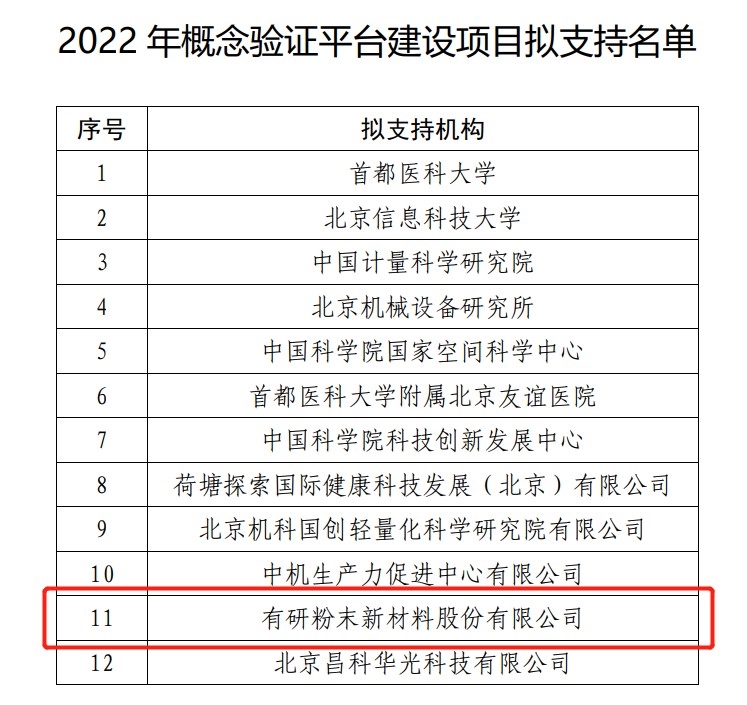 近日,北京市科委、中關(guān)村管委會公布“2022年概念驗證平臺建設(shè)項目支持名單”,共批準(zhǔn)設(shè)立首批概念驗證平臺12家,其中企業(yè)單位5家,有研粉材“金屬粉體材料概念驗證平臺”成功入選。這是有研粉材獲批工信部金屬粉體材料產(chǎn)業(yè)技術(shù)研究院、北京市金屬粉末工程技術(shù)研究中心等又一科技創(chuàng)新成果轉(zhuǎn)化平臺。