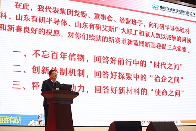 大會(huì)播放了2022年重點(diǎn)工作視頻短片,回顧了公司成功登陸科創(chuàng)板的歷程。山東有研艾斯總經(jīng)理閆志瑞匯報(bào)了2022年度山東有研艾斯重點(diǎn)工作落實(shí)情況;山東有研半導(dǎo)體常務(wù)副總劉斌匯報(bào)了山東有研半導(dǎo)體全年生產(chǎn)經(jīng)營情況;財(cái)務(wù)總監(jiān)、董事會(huì)秘書楊波回顧了有研硅IPO工作的整體過程和關(guān)鍵時(shí)刻,同時(shí)轉(zhuǎn)達(dá)了董事長方永義先生致公司全體員工的新春祝福,并感謝大家一年來的辛勤付出與無私奉獻(xiàn)!