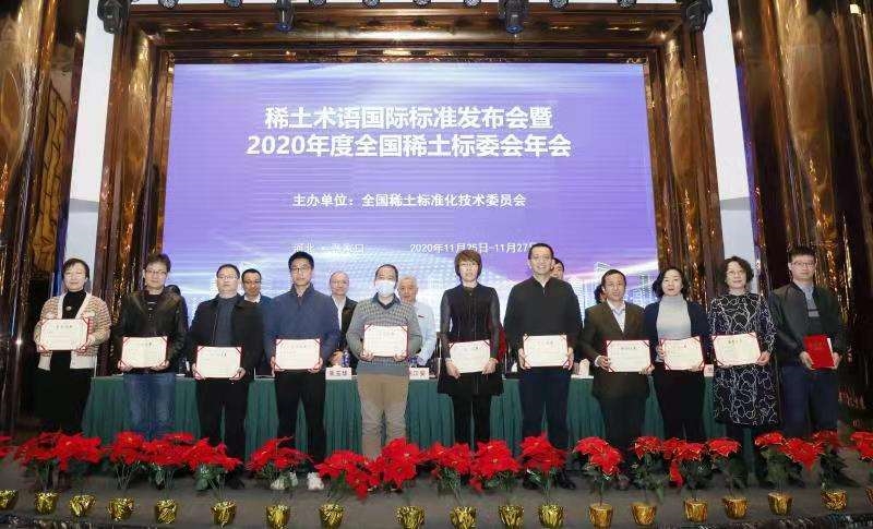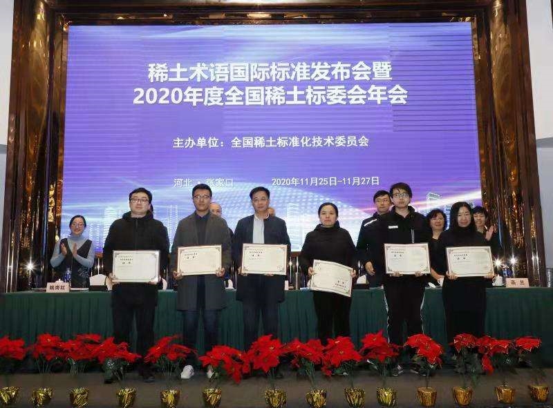 會(huì)議頒發(fā)了“2020年度稀土標(biāo)委會(huì)技術(shù)標(biāo)準(zhǔn)優(yōu)秀獎(jiǎng)”,并對(duì)“2020年度稀土標(biāo)準(zhǔn)化先進(jìn)工作者”進(jìn)行了表彰。有研稀土及其子公司樂(lè)山有研牽頭制定的兩項(xiàng)行業(yè)標(biāo)準(zhǔn)《綠色設(shè)計(jì)產(chǎn)品評(píng)價(jià)技術(shù)規(guī)范 稀土火法冶煉產(chǎn)品》《鑭鈰金屬》均獲得2020年度稀土標(biāo)委會(huì)技術(shù)標(biāo)準(zhǔn)獎(jiǎng);趙龍勝博士獲評(píng)2020年度稀土標(biāo)準(zhǔn)化先進(jìn)工作者。