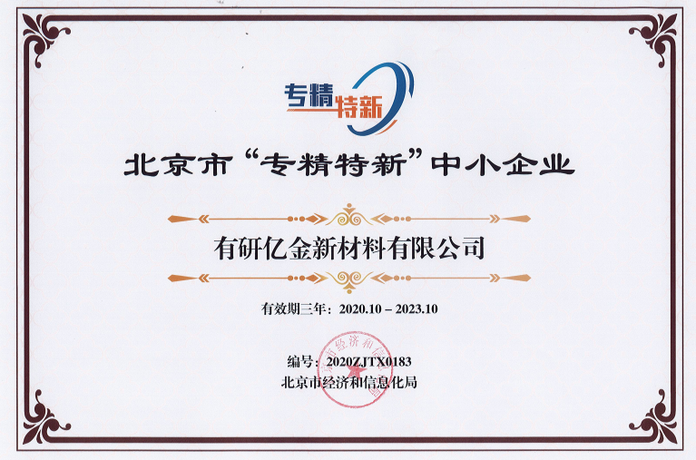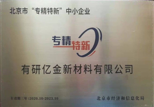 經(jīng)北京市經(jīng)濟和信息化局評審,有研億金榮獲2020-2023北京市“專精特新”中小企業(yè)榮譽稱號。