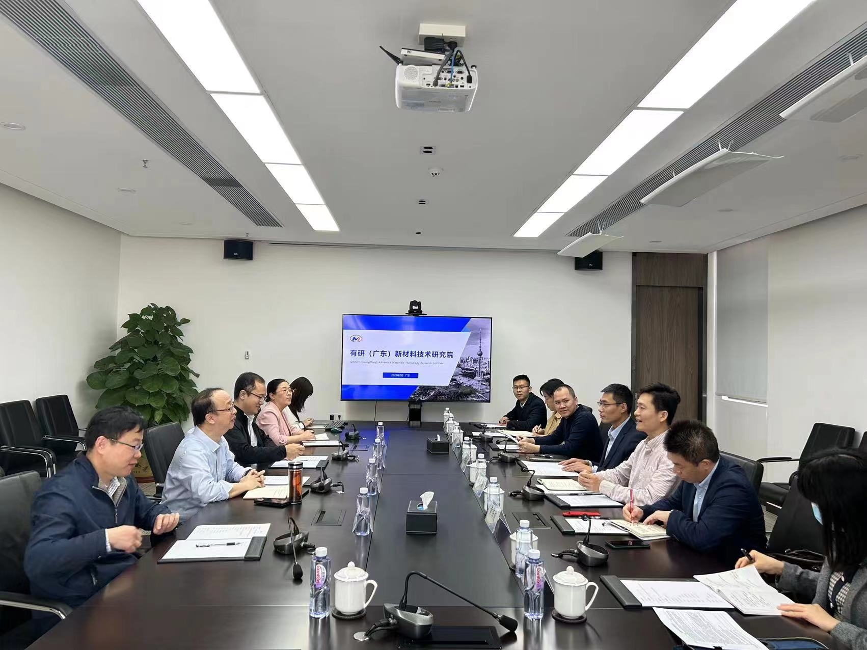 2023年2月23日上午,佛山市財政局副局長許漢楚、佛山市科技局副局長李國強一行到訪有研廣東院。有研廣東院院長毛昌輝接待了來訪。