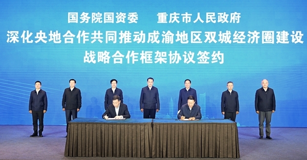 會(huì)上,重慶市委常委、常務(wù)副市長(zhǎng)陳鳴波介紹了重慶經(jīng)濟(jì)社會(huì)發(fā)展和成渝地區(qū)雙城經(jīng)濟(jì)圈建設(shè)情況,對(duì)深化重慶與央企合作提出建議。國(guó)務(wù)院國(guó)資委黨委委員、副主任袁野、趙世堂,國(guó)務(wù)院國(guó)資委黨委委員、副部長(zhǎng)級(jí)干部周?chē)?guó)平,重慶市領(lǐng)導(dǎo)張鴻星、羅藺、江敦濤、張安疆出席會(huì)議。國(guó)務(wù)院國(guó)資委與重慶市政府簽署戰(zhàn)略合作框架協(xié)議。兵器裝備集團(tuán)、國(guó)家電網(wǎng)、中國(guó)大唐、中國(guó)星網(wǎng)、中糧集團(tuán)、華潤(rùn)集團(tuán)、中國(guó)旅游集團(tuán)、招商局集團(tuán)、中國(guó)鐵建、中國(guó)物流等10家中央企業(yè)主要負(fù)責(zé)同志作了交流發(fā)言,充分表達(dá)了深化央企與重慶合作的愿望、提出了務(wù)實(shí)舉措。