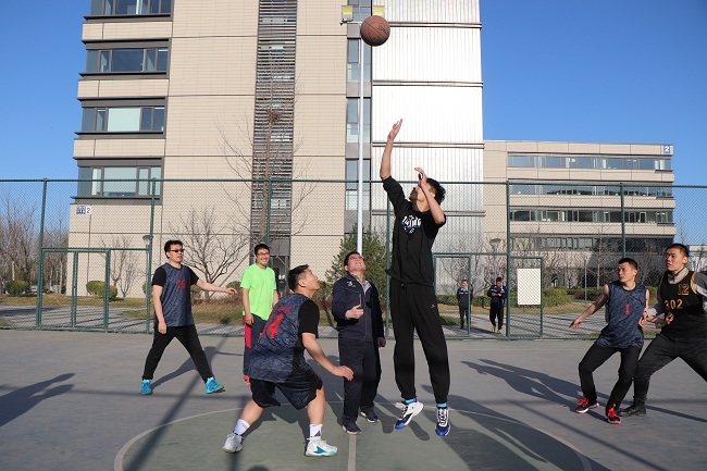 實驗室參觀結(jié)束后雙方進行了籃球聯(lián)誼比賽,兩隊隊員頑強拼搏、奮勇爭先,團結(jié)一心、協(xié)同作戰(zhàn),在拼搏競技中加深了雙方的友誼。