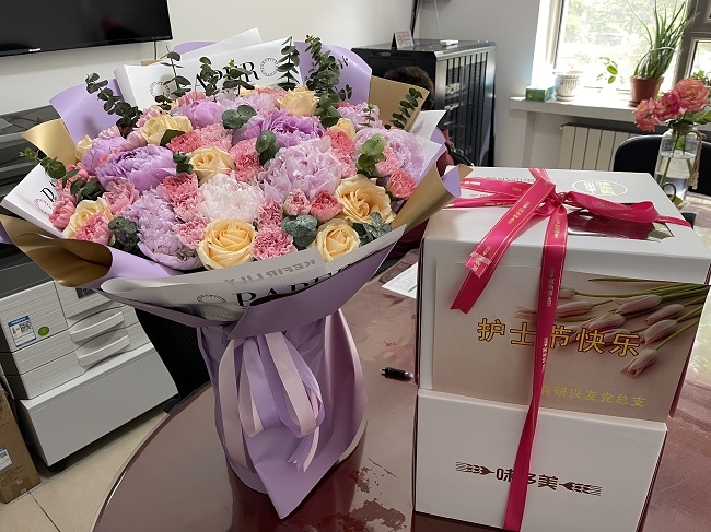 5月12日是第111個國際護士節(jié),有研興友副總經(jīng)理張景懷、張福萍一行帶著鮮花與禮物前往有研衛(wèi)生站,向疫情之下堅守在工作崗位的醫(yī)護人員送上節(jié)日的問候。