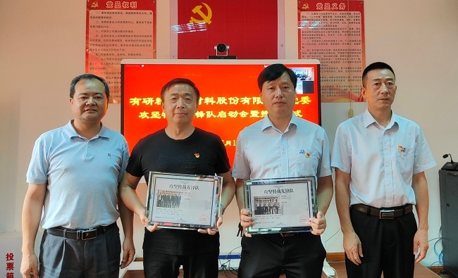 6月17日,有研粉材黨委按照“穩(wěn)增長、防風險、促改革、強黨建”工作要求,圍繞公司2022年度重點工作,啟動“攻堅特戰(zhàn)先鋒隊”授旗儀式。會議采取線上線下相結合的方式進行,分為粉材主會場、合肥分會場和重冶分會場。黨委副書記、紀委書記李聯(lián)榮主持會議。