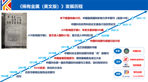 十年樹木,百年樹人,經(jīng)過四十年的努力進(jìn)取,《稀有金屬(英文版)》已經(jīng)從新枝嫩芽,蛻變?yōu)榇謮训闹l,在世界舞臺(tái)上展現(xiàn)它雄渾的英姿。