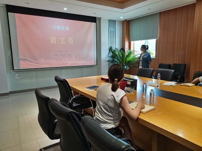 比賽過后,黨支部開展了2022年第一期紅色故事分享會。王濤、葉靜、汪穎、駢龍飛和陳永達(dá)5位同志分別選取新疆生產(chǎn)建設(shè)兵團(tuán)王震將軍、趙一曼、黃文秀典型人物以及平江起義、十三陵水庫等歷史事件和故事,采用文字和影音資料的形式,生動地向參會人員講述紅色故事,分享自己對人物或歷史學(xué)習(xí)的感悟。