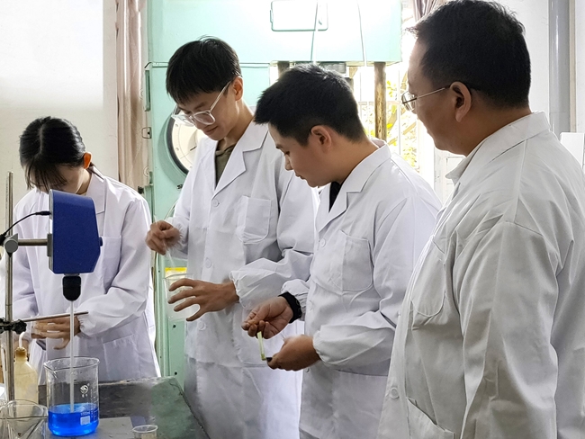 有研重冶總經(jīng)理助理張敬國(右一)和公司的年輕人們正在做實驗
