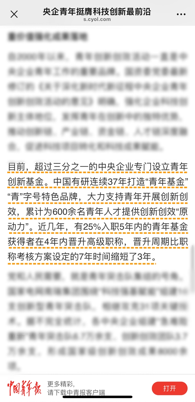 11月8日,《中國青年報(bào)》刊發(fā)文章《央企青年挺膺科技創(chuàng)新最前沿》,其中,聚焦中國有研團(tuán)委亮點(diǎn)工作,對(duì)“青年基金”“青”字號(hào)品牌進(jìn)行報(bào)道。讓我們一起來看看!