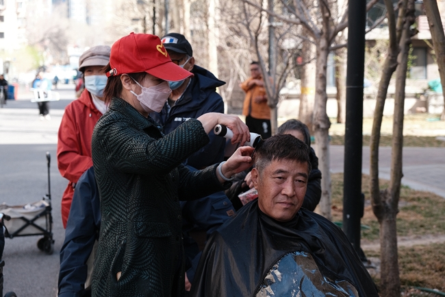 活動(dòng)尾聲,公益剪發(fā)和磨刀區(qū)依然忙碌。剪刀翻飛間,碎發(fā)簌簌落下,志愿者細(xì)心地為居民修剪鬢角,鏡中映出老人舒展的笑容:“這手藝真不錯(cuò)!”