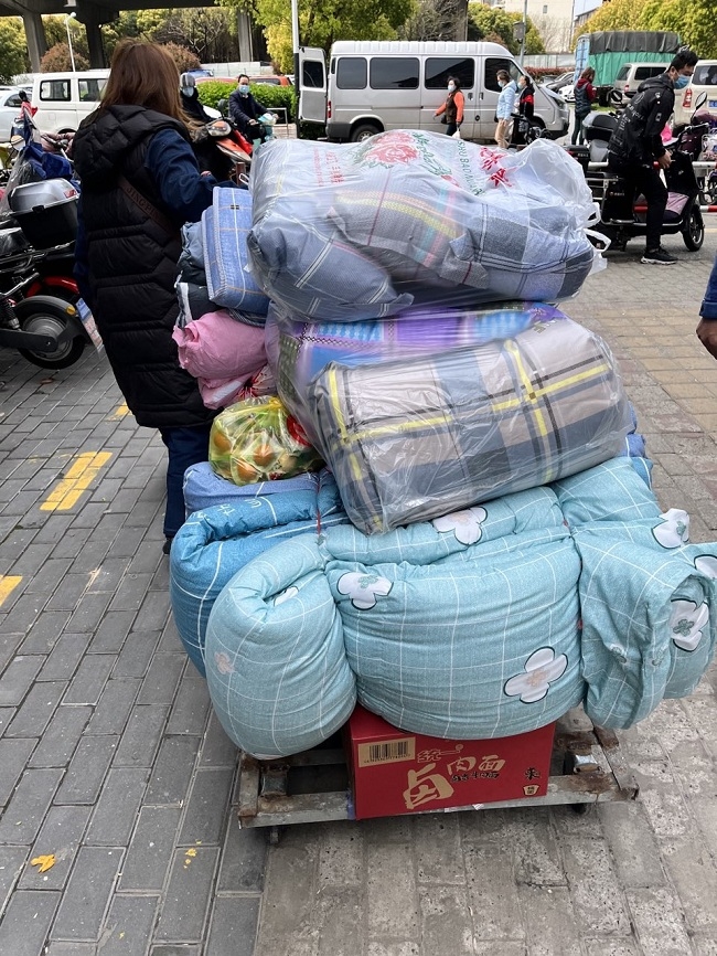 為滿足駐守員工的生活需求,上海團(tuán)干部季悅主動(dòng)擔(dān)當(dāng),為駐守員工加急采購被褥、床單、方便食品及果蔬等物資,并發(fā)放到員工手中,確保員工生活保障。團(tuán)干部積極尋找途徑采購新冠抗原試劑,保障封控期間及解封后的員工檢測(cè)儲(chǔ)備需求。