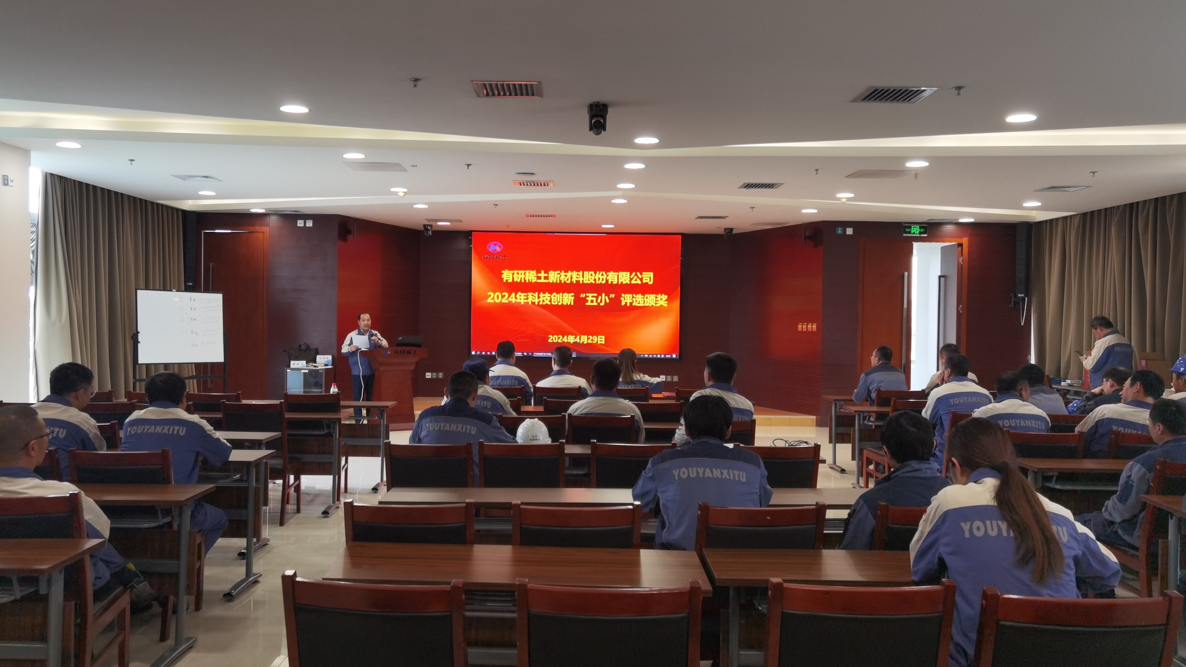 4月29日,有研稀土在燕郊基地召開了科技創(chuàng)新“五小”表彰大會,公司領導班子成員、各部門負責人及獲獎人員50余人參加了會議。