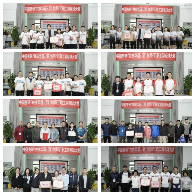 經(jīng)過激烈的角逐,資環(huán)-粉材一隊獲得冠軍,工研院一隊獲得亞軍,復(fù)材-有科聯(lián)隊獲得季軍,第四名至第八名分別由國合-興友聯(lián)隊、職能-有研硅一隊、新材三隊、工研院二隊、資環(huán)-粉材二隊獲得。集團(tuán)副總經(jīng)理黃倬和裁判員們?yōu)楂@獎代表隊頒發(fā)了獎品和證書,并與大家合影留念。