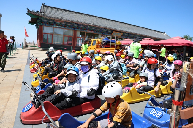 最先開(kāi)展的登山活動(dòng)非??简?yàn)體力和意志。孩子們或三兩成隊(duì),腳步輕快地競(jìng)速上山,如靈動(dòng)的小鹿穿梭于山林間;或結(jié)伴而行,走走停停,歡聲笑語(yǔ)隨山風(fēng)飄散在濃密的綠葉之上。下行的山地滑車項(xiàng)目最受孩子們喜愛(ài)。在家長(zhǎng)的陪伴下,孩子們?nèi)卑踩b備坐上滑車,沿著蜿蜒的軌道穿梭于山林之間,感受疾馳風(fēng)速與自然美景,山林間回蕩著孩子們驚呼和歡笑。